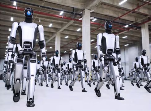 A fabricante chinesa UBTECH divulgou um vídeo no qual centenas de robôs humanoides aparecem alinhados dentro de um galpão, realizando movimentos sincronizados antes de marcharem até contêineres de transporte. As imagens, gravadas em Shenzhen, mostram o modelo Walker S2, a segunda geração do robô criado para atuar na manufatura, logística e inspeção industrial. Esses robôs são capazes de executar tarefas industriais complexas, acima do padrão humano, com a promessa de otimizar as linhas de montagem.